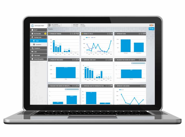 Managing a modern fleet is a constant balancing act between cost, compliance, and vehicle availability. With r2c Business Intelligence, fleet operators gain real-time insights into their entire operation, from vehicle downtime and defect trends to compliance status and maintenance spend.